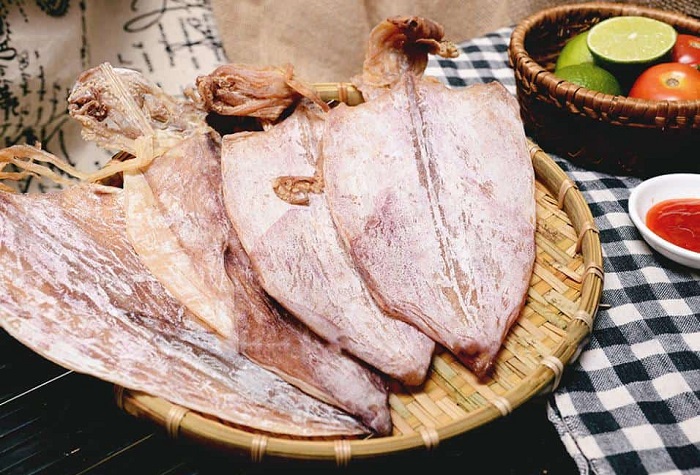 Mực khô chính là một trong những loại hải sản Quảng Ninh ngon tuyệt vời. Bạn có thể xé nhỏ từng miếng, chấm với tương ớt, nhắm cùng bia lạnh và cảm nhận. Mực được nướng lên mang mùi hương nồng nàn, hương thơm kích thích bất cứ thực khách nào cũng muốn ăn ngay.